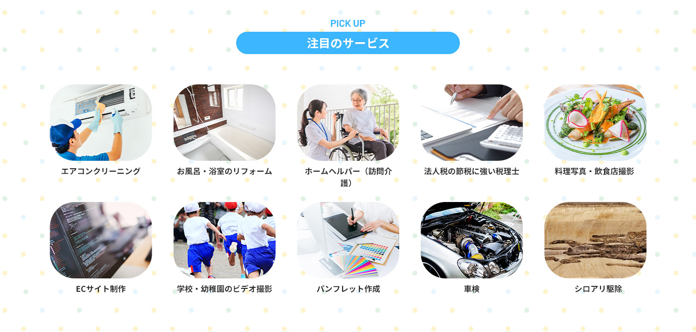 暮らしにまつわるサービスを行っている店舗(プロ)をたくさん掲載しています。